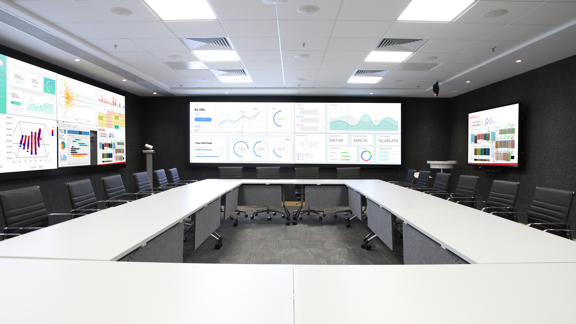 Theme of the project is to create a best-in-class multi-purpose room fulfilling purposes of dashboard panel for data visualisation and analytics, executive meetings with collaboration capability, and video impress for events. Spatial arrangement of the room is set to be flexible and mobile, so does the equipment set-up.